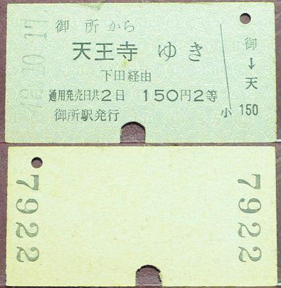 乗車券:御所⇒天王寺