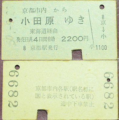 京都から小田原までの乗車券で小田急沿線に住んでいたので新幹線のこだまに乗っていたのだと思います。