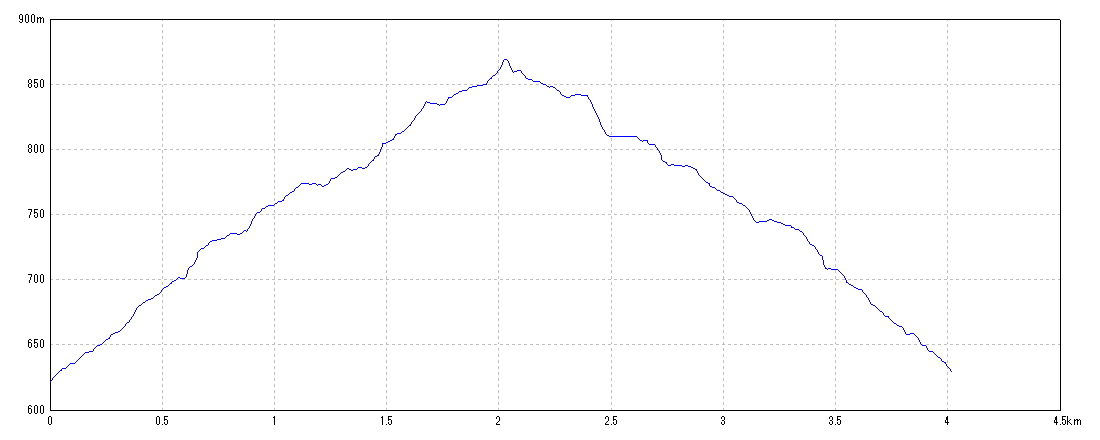 歩いて来た道を振り返って撮影したものです。左に見えるのが先ほどの切り株です。