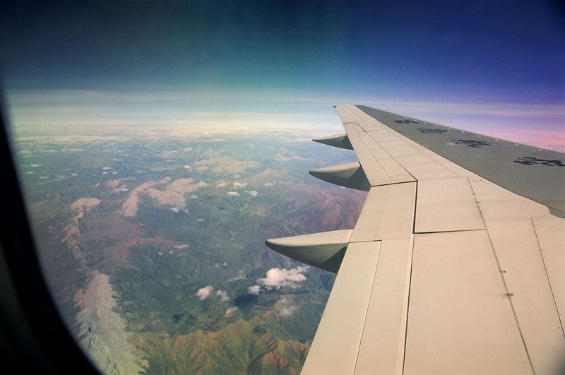 チベット旅行の帰りの拉薩から成都への飛行機の機内から撮影した中国の山脈の写真で場所の特定が出来ていません。