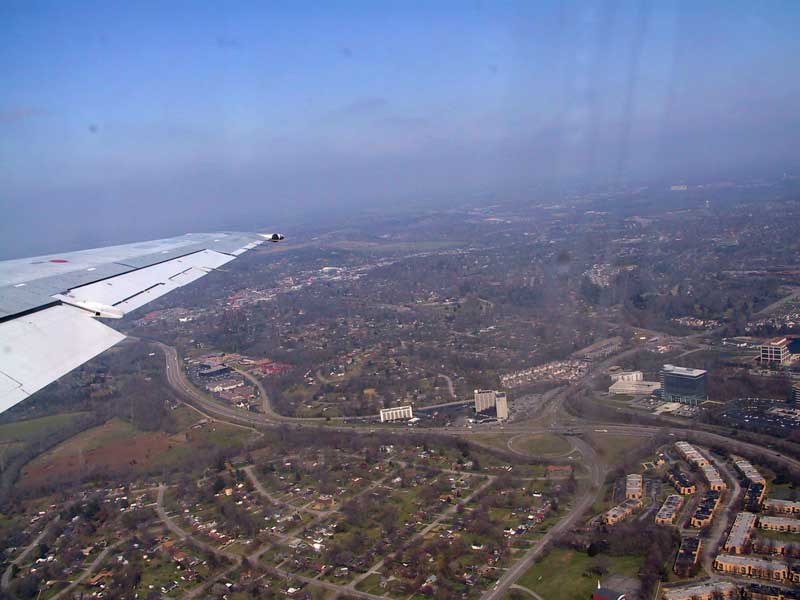 北米出張のときの移動時に撮影した風景で、フラップが出ているところから着陸寸前のようです。