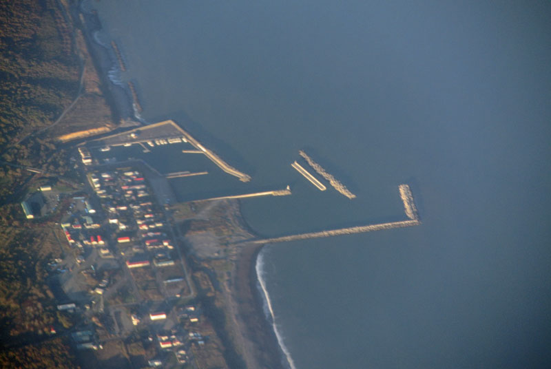 帯広から羽田に向かうフライトで陸地から出るときに下に港が見え、それを撮影しました。