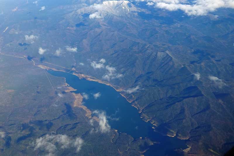 地上からは何回も行ったことのある糠平湖で、湖と士幌線の廃線跡と北海道遺産のタウシュベツ橋が見えます。