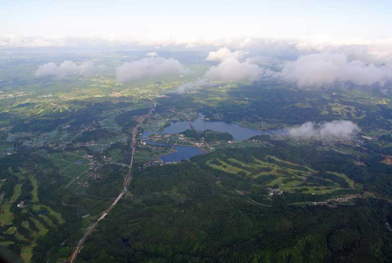 房総半島の中央部の高滝湖が見えるところです。 湖の中に突き出ている半島のようなところを左から右に小港鉄道が横切っています。 有名な養老渓谷はこの右手のほうになります。