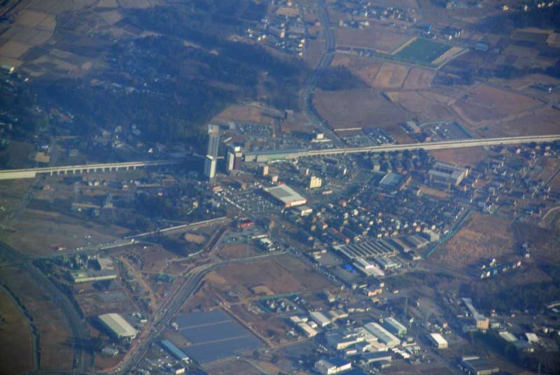 一直線に伸びているのはつくばエキスプレスで真ん中付近に「みどりの」駅があります。