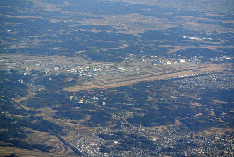 もう少しで羽田への進入でカメラ禁止になる直前で見えてくる成田空港です。