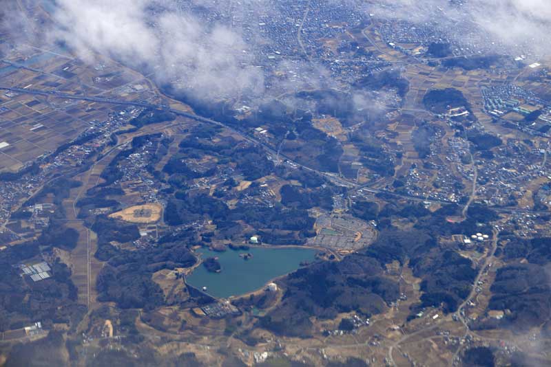 水戸の景観30選に選ばれている楮川ダムとそれにより作られたダム湖が見えていました。湖の左にハートの様なのは田野市民運動場のようです。