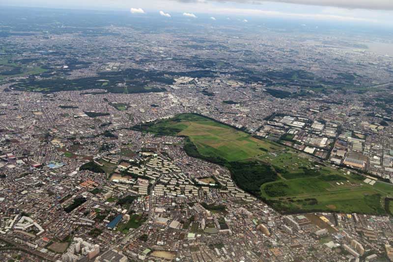 都会の中にぽっかりと緑の大きなエリアが見えてきました。陸上自衛隊の習志野駐屯地です。