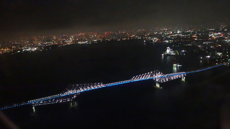夜に熊本空港を離陸して羽田空港のB滑走路に着陸するときに東京ゲートブリッジがライトアップされていて綺麗に見えました、