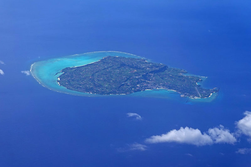 沖縄本島の手前で見えて来るのが与論島で沖縄が変換される前は日本の南の島のバケーションのメッカだった島。右側に与論空港の滑走路が見え、左のリーフの所に百合ヶ浜があります。