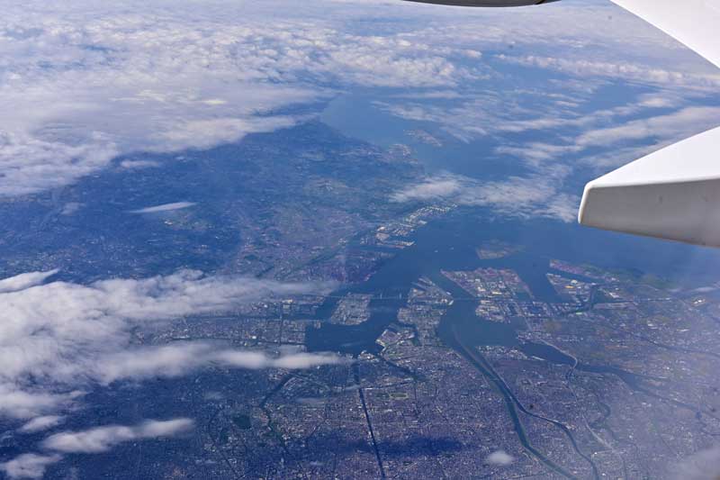 名古屋の伊勢湾に面したエリアが見えてきました。ここには名古屋港があり大きな川では揖斐川や木曽川の河口があり四日市工業地帯などが沿岸に集まっています。
