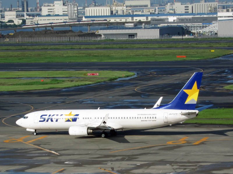 スカイマークエアラインズの機材でウィングレットにはクローバーのマークが描かれています。。