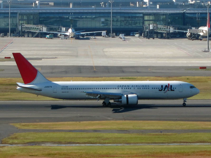 着陸した直後の767でエンジンナセルがまだ開いています。