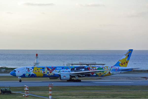 全日空のポケモンジェットですが、海をバックにした那覇空港でもお会いしました。