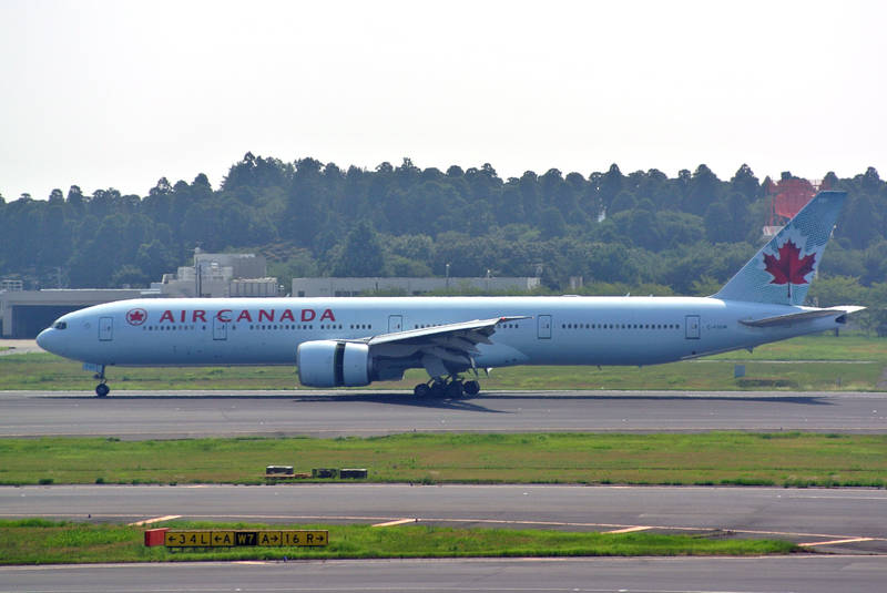 カナダ航空の777が着陸して来ました。 カナダといえばメープルで尾翼に大きく描かれています。