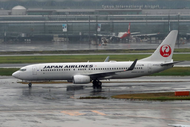雨が降る羽田空港のA滑走路横の誘導路を離陸に向けて移動して行きました。
