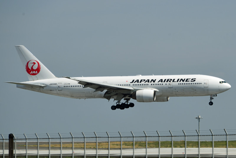 羽田空港のB滑走路に着陸するトリプルセブンでもう滑走路のすぐ上まで来ています。