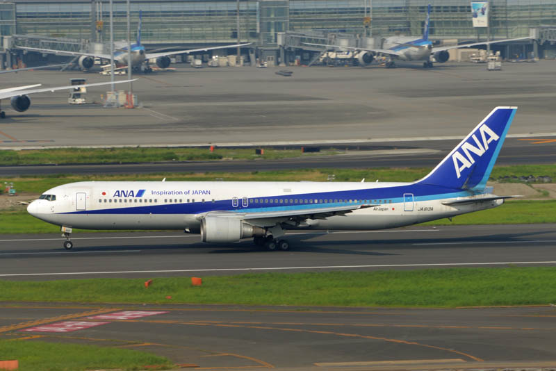 ANAの767が羽田空港のA滑走路を離陸していきます。
