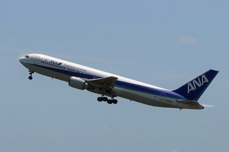 羽田空港から離陸するANAの767です。767は離陸性能が良いのか一気に高度があがっています。