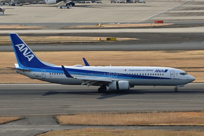 ANAの787が着陸して来ました。ウィングレットは青ですがANAの文字は入っていませんね。