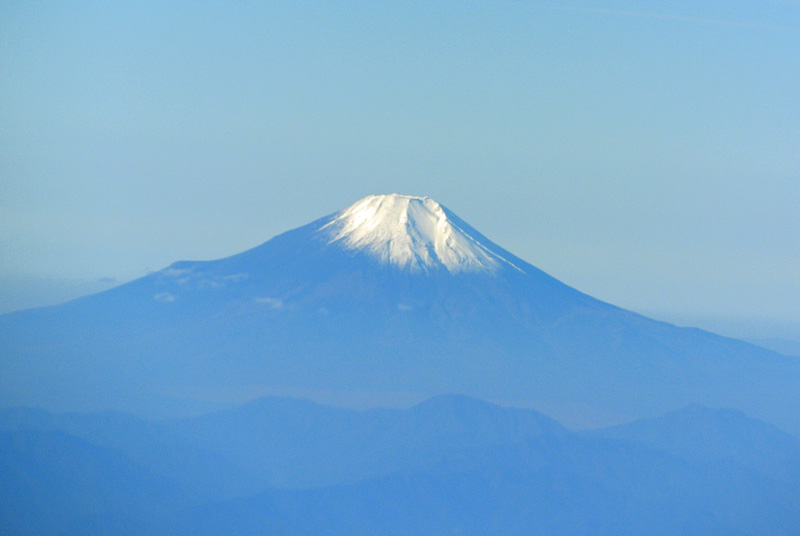 ズームして山頂付近をアップで撮影しました。山頂に雪が積もっているので何とか見えました。