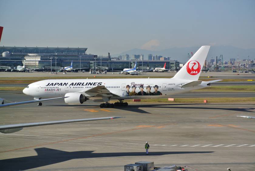 出張の時に搭乗までの間にJALラウンジで休憩していた時に嵐JETが前を通過したので富士山のコラボを撮影しました。