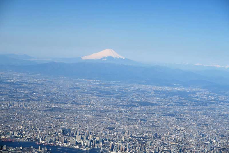 離陸して上昇した時に東京の街並みと一緒に撮影しました。高いビルは沿岸部に集まっているようですね。