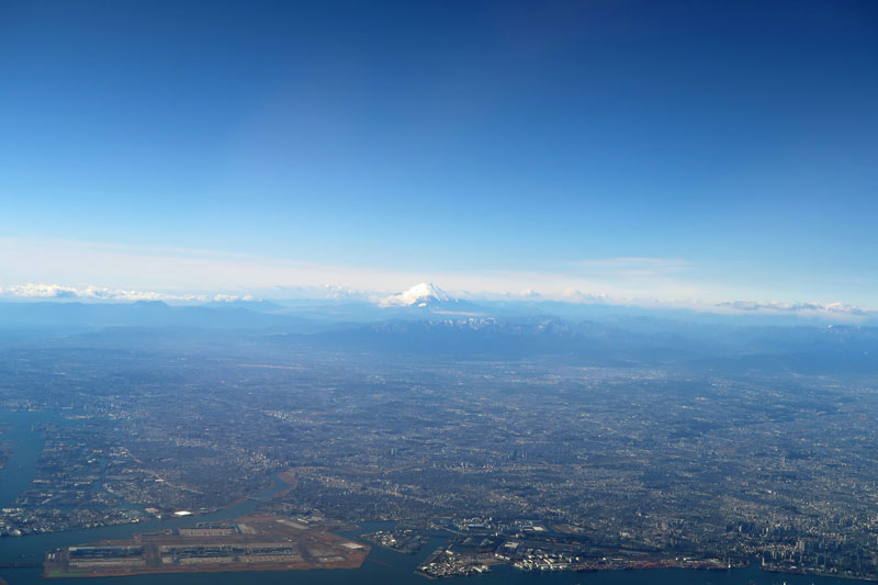 離陸してから羽田空港と富士山を入れて撮影したものです。