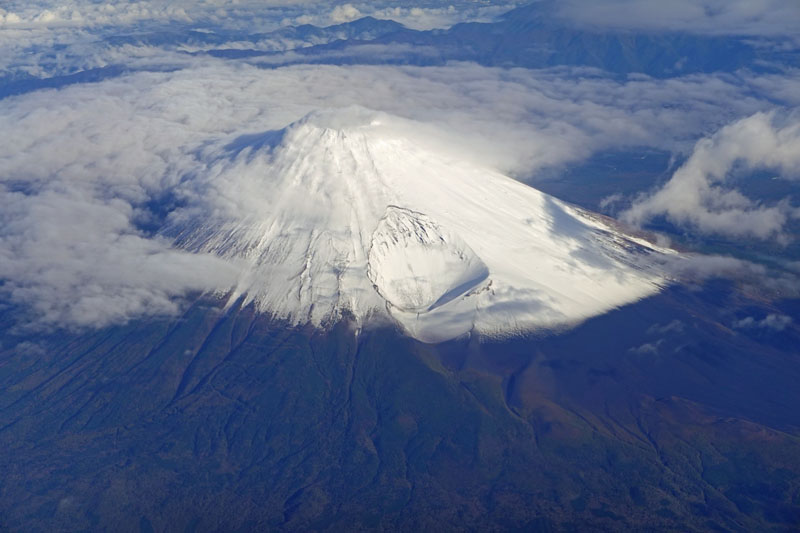 真横に来た時にズームして撮影しました。宝永火口のしたくらいまで雪が積もっています。 宝永山に登った時は雨でもう一回チャレンジと思っていましたが、この状況では来年になりますね。